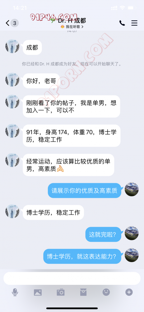 从发贴到现在,差不多有50人加我吧,接下来,我会随机选择一些“优质”、“高素质”单男的对话记录,供大家赏析